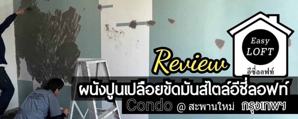 ..Review ผลงานเปลี่ยนผนังคอนโดเดิมๆที่ทาสีไว้ 2สี ให้เป็นผนังปูนเปลือยขัดมันสไตล์อีซี่ลอฟท์ @ The Base Saphanmai Condominium – คอนโด เดอะ เบส สะพานใหม่ กทม.